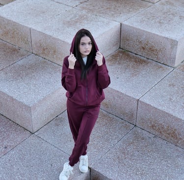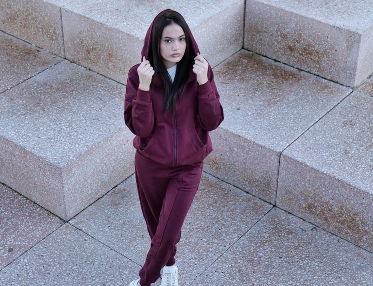 Subtle burgundy accents on black and beige pieces add a touch of refined energy to every outfit.